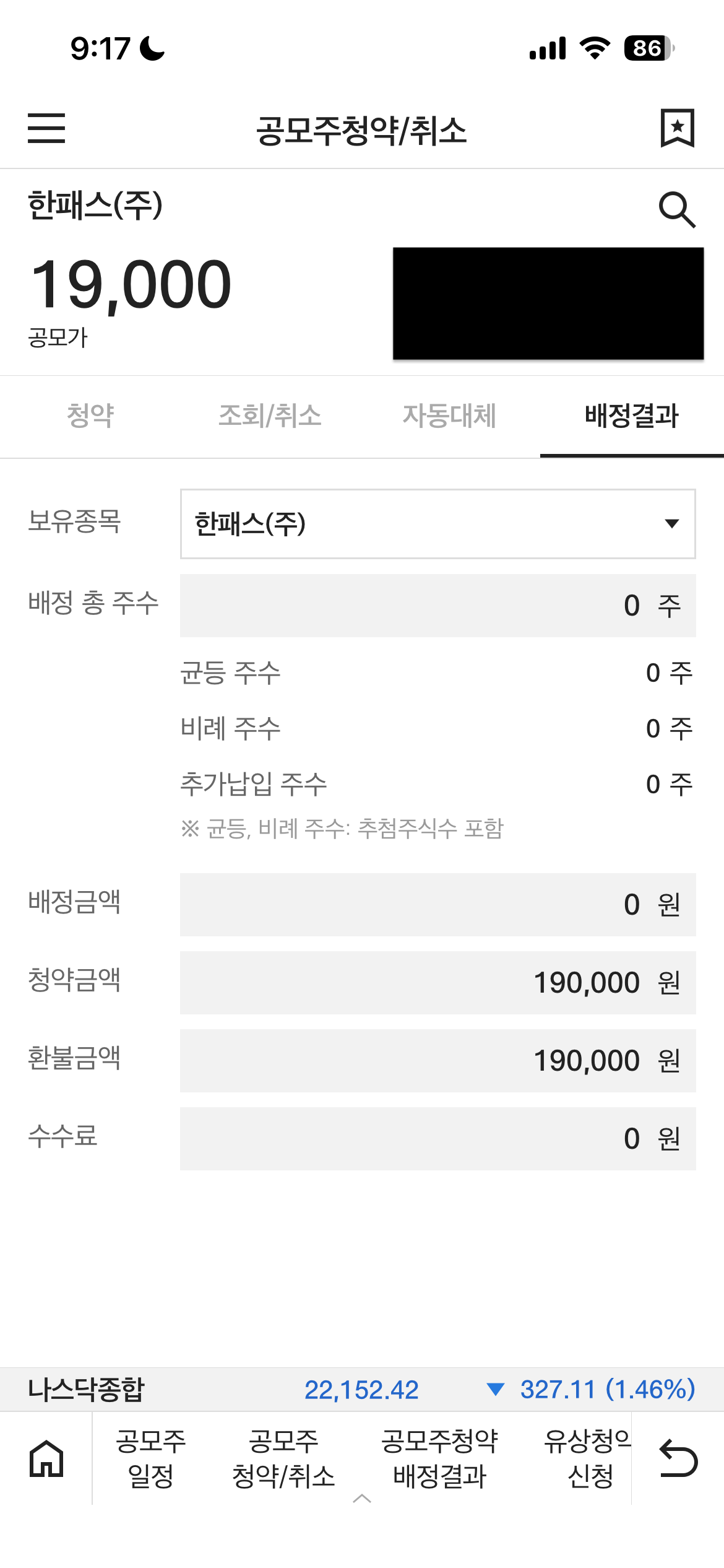 한패스 공모주 배정 결과